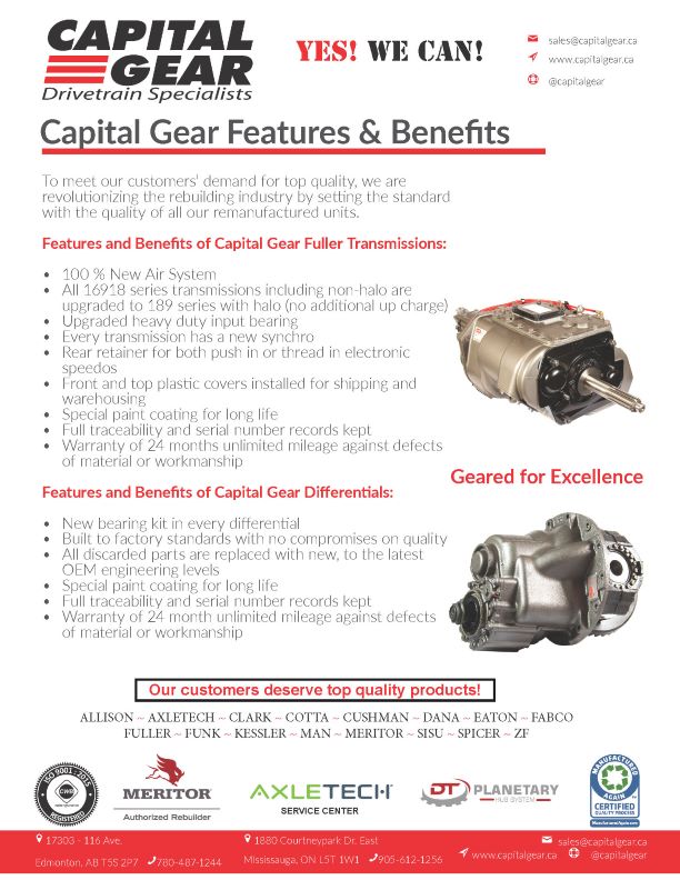 At Capital Gear, we are revolutionizing the rebuilding industry by setting the standard for the quality of all our remanufactured units to meet our customers’ demand for top-quality products. Discover the unparalleled features and benefits of our Capital Gear Fuller Transmissions and Differentials, designed to deliver exceptional performance and reliability.