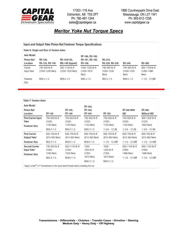 RESOURCES Vendor Brochures Capital Gear is a Meritor® Authorized Rebuilder Maximize Your Truck’s Potential with the DT Planetary Hub System Meritor P600 Heavy-Haul Planetary Axles: Engineered for Extreme Conditions Meritor® FAT-30 Auxiliary Transmission: Engineered for Extreme Duty Fabco FAT-30 Auxiliary Transmission: Power and Versatility Capital Gear’s Commitment to Quality: The Eaton Advantage Resources Capital Gear Brochures Capital Gear Features & Benefits: Setting the Standard in Quality High-Quality Steering Gears and Pumps for All Applications The Capital Gear Advantage: RTLO18918B Comprehensive Off-Highway Drivetrain Solutions Comprehensive Driveline Solutions at Capital Gear Revolutionizing Quality: Capital Gear’s Remanufactured Allison Transmissions Trust Capital Gear for Your Agricultural Drivetrain Needs Get to Know Capital Gear Eaton NoSpin Differential: Unmatched Traction and Reliability Resources Technical Bulletins Differential Nut Torque Specs – Updated January 2026 Fuller Transmission Nut Torque Specs – Updated January 2026